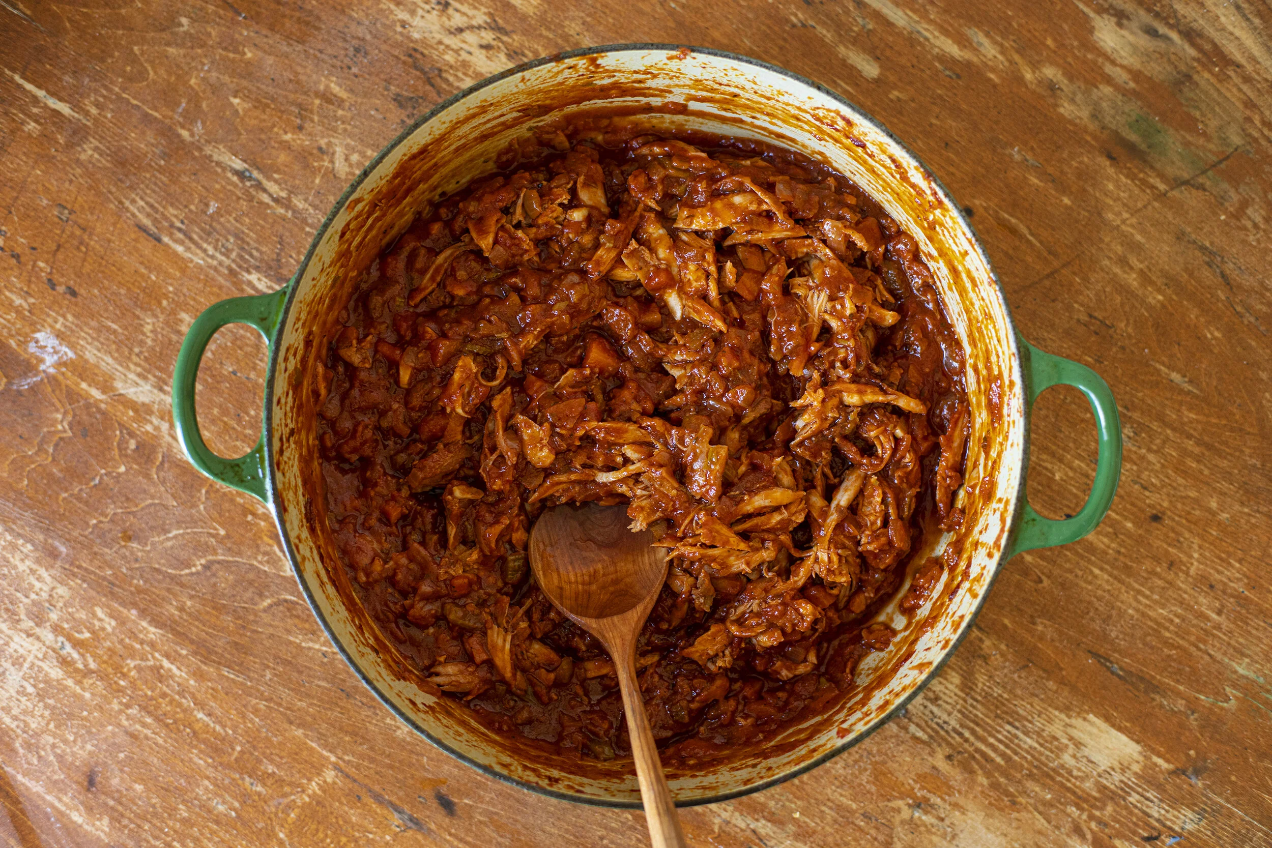 Shred the meat from the bones and pull apart into small pieces. Add the shredded meat back into the ragu and stir together.